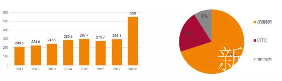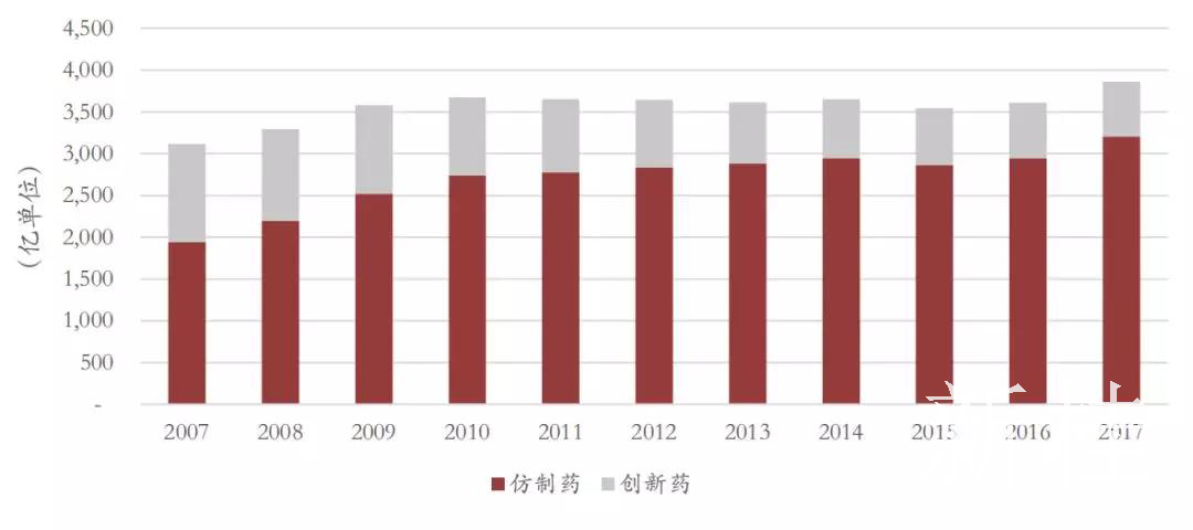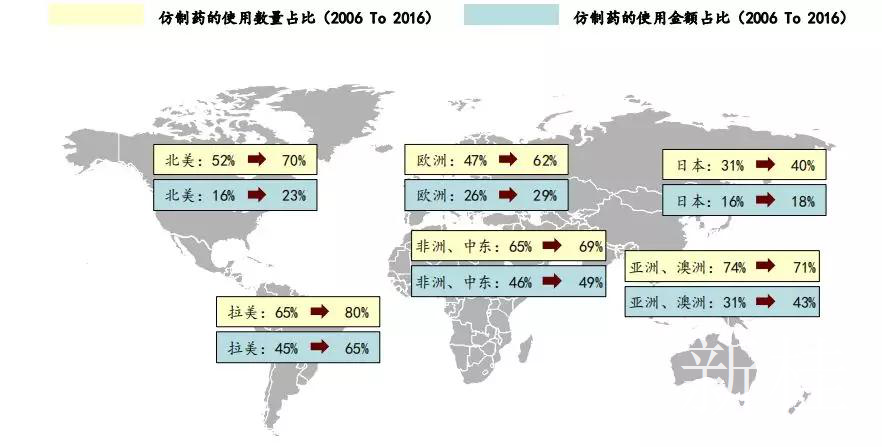 根据统计,2016年全球仿制药市场规模达到2200亿美元,2006-2016年全球各大药品市场中,仿制药的处方量和处方金额占比都呈现明显提升。