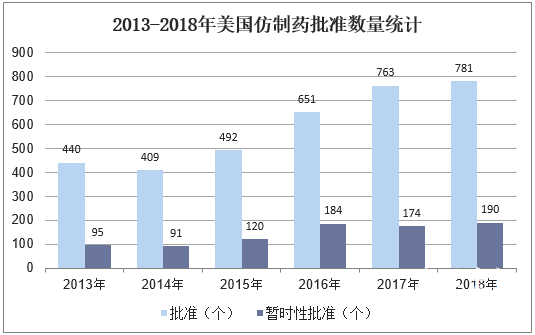 2015年以来,美国仿制药的审批随着收费制度的完善逐渐提速,每年批准的ANDA数量逐年增多。审批的提速,虽然对TEVA、Mylan等欧美仿制药巨头的增量品种构成一定的利好,但更多的则体现为对其巨大的存量业务的冲击。2018年美国仿制药品准企业个数为781个,暂时性品准企业个数为190个。