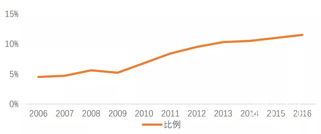 印度仿制药的发展经历了医药产品专利取消、并购浪潮、跨国合作+研发三大阶段,因此它的仿制药在世界的影响力是毋庸置疑的。目前印度的仿制药药品销往全球包括美国、英国、德国等在内的数十个国家,其中美国更是印度仿制药的最大进口来源国。根据Motilal Oswal调研数据显示,印度仿制药在美国仿制药市场比例在不断提高,从2006年的4.5%增长到了2016的11.5%。