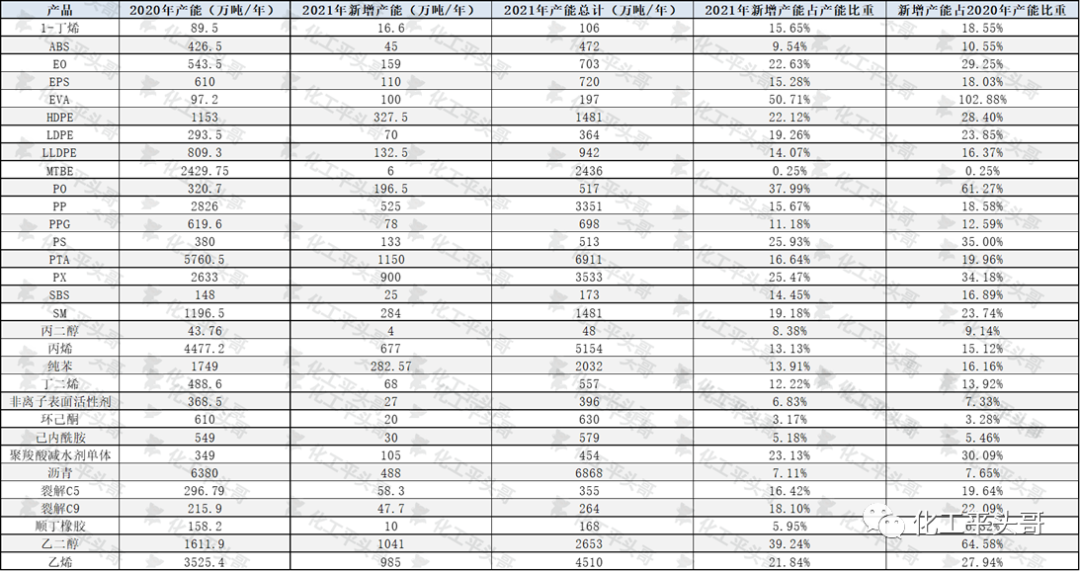 其一,2020年上半年受到疫情的影响,很多在建的化工项目因设备物流不畅,以及人员无法到岗,造成项目延期的情况出现,这在很大程度上造成了约3-4个月的延期周期,特别是对计划在2020年下半年投产的项目,不得不延期至2021年投产,从而加重了2021年的投产压力。