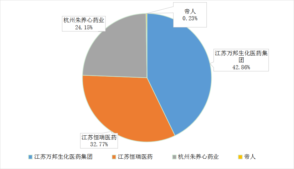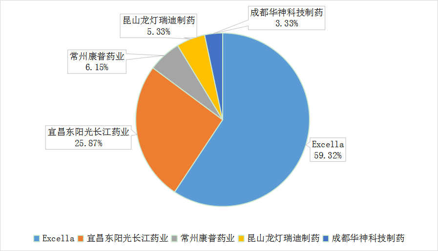 其中,德国Excella、宜昌东阳光长江药业、常州康普药业、昆山龙灯瑞迪制药4家的销售占领了大部分的苯溴马隆市场。
