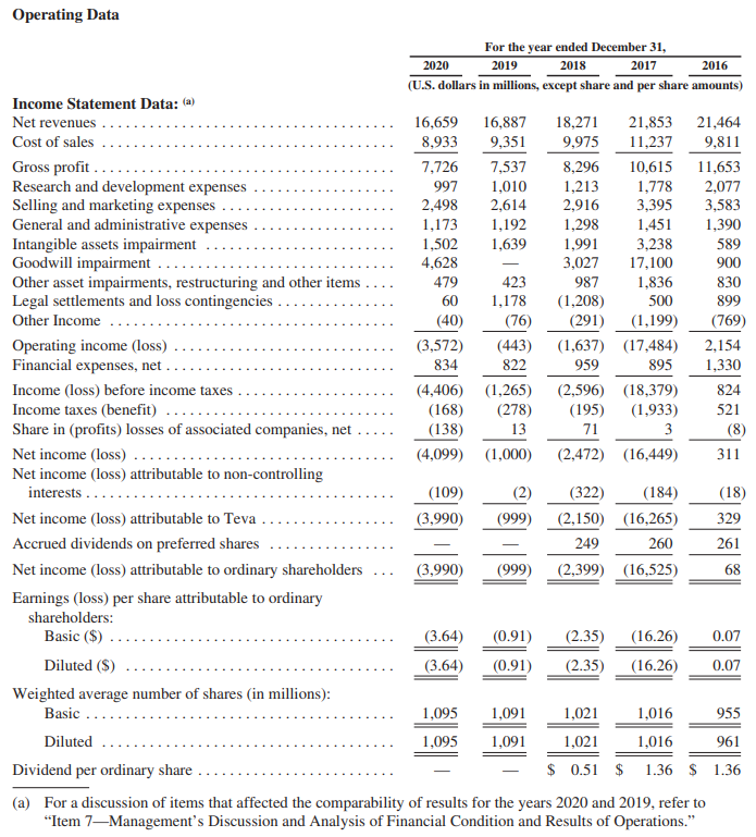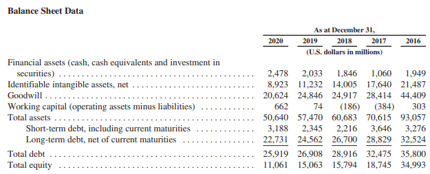 另外,公司的资产状况也不容乐观,据财报显示,2020年,虽然梯瓦的总负债从2019年的269.08亿美元降至259.19亿美元,但总资产继续缩水,降至506.40亿美元。具体资产负债表数据如下: