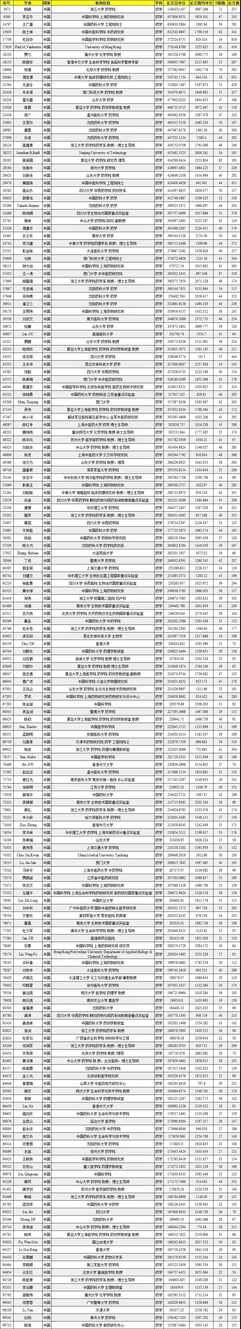 近期,全球学者库,公开了全球顶尖前10万科学家,其中,国内药学175人(数据来源于全球学者库):