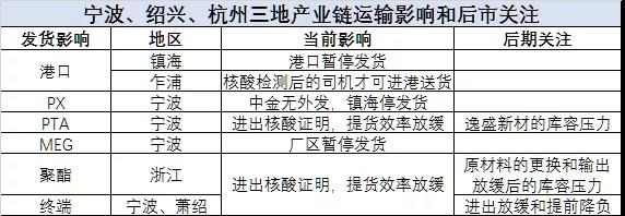 浙江防控升级的地区多为化工集中区域,汇集纺织原料生产、下游聚酯消费、包括芳烃产业、聚烯烃产业、还有危化品生产等。其中,镇海地区作为国内重要的石化基地,其管控升级对部分化工品的影响巨大。