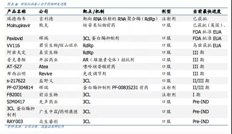 新冠小分子药物布局