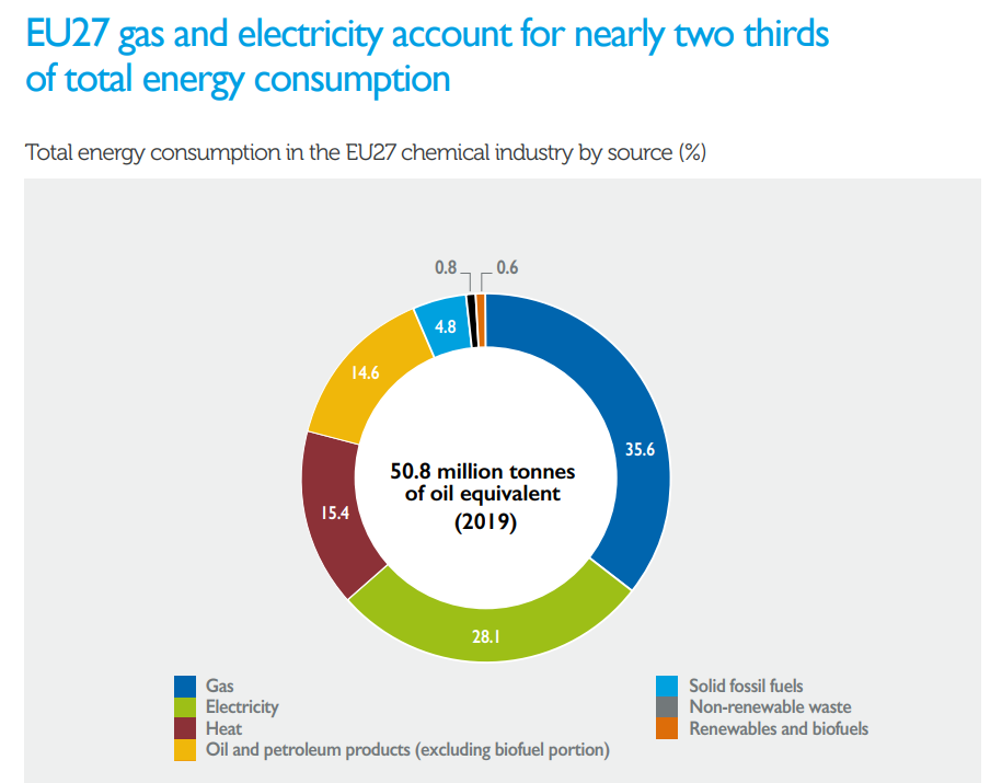 通过翻看欧洲化学理事会发布的2022年欧洲化学工业事实与数据,我们可以看出,欧盟27国在化工品生产耗能方面,天然气的用量占比最大,为35.6%,此外天然气在欧洲也可作为发电、供热的燃料,算上这部分间接使用天然气的部分,预计天然气用量将超过50%,这也体现了天然气作为燃料来说对于欧洲化工品生产的重要性。
