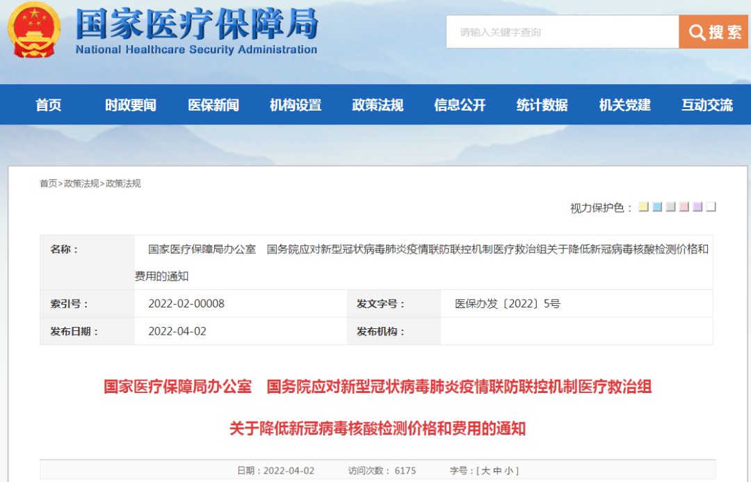 4月2日,国家医保局发布了关于降低新冠病毒核酸检测价格和费用的通知。