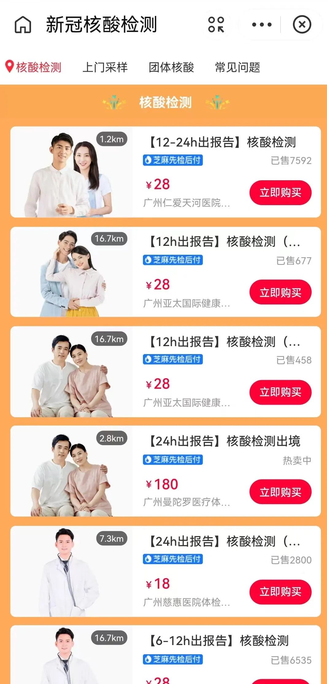“政府指导价”顶层政策落地,市场端得到了快速响应。截至目前,第三方平台价格显示,包括民营医疗机构在内的各大医疗机构已将核酸检测价格按照规定进行了调整,价格基本上降至28元及以下。