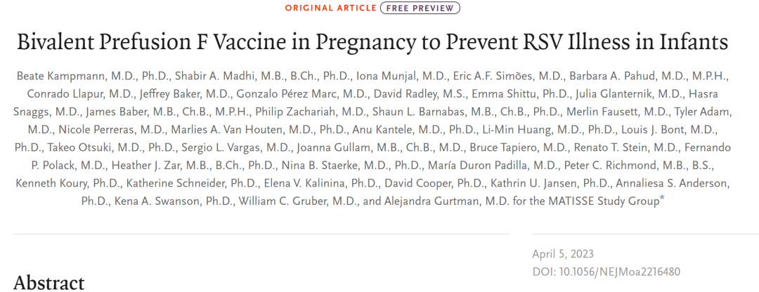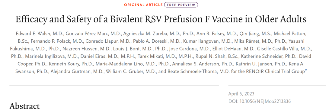 2023年5月31日,美国FDA首次批准Abrysvo(RSVpreF,PF-06928316)上市,用于预防60岁及以上人群出现由RSV引起的下呼吸道疾病(LRTD)。