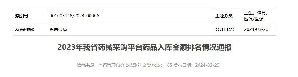 《通报》指出,此次排名是根据浙江省药械采购中心平台2023年1月1日至12月31日期间的药品采购订单,将药品入库金额按通用名、剂型、规格、材质及生产企业汇总,其中部分药品剂型、材质等依据临床使用情况进行合并统计。